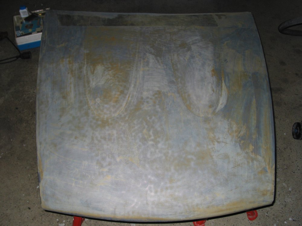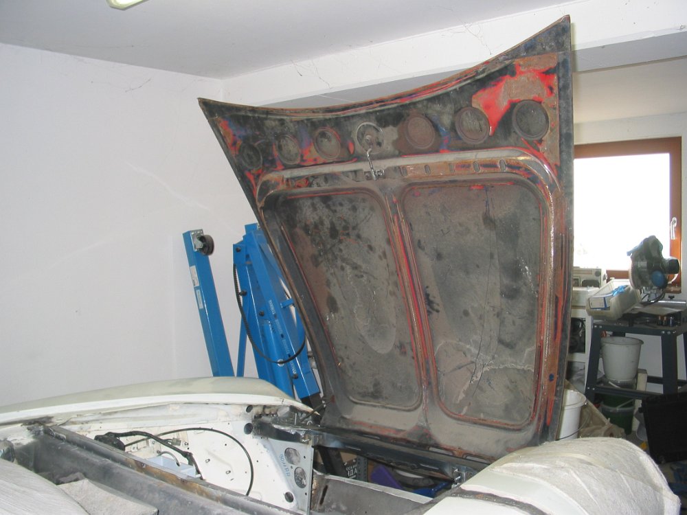 Hier sieht man den rostigen Zustand der original Motorhaube.