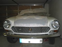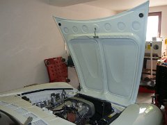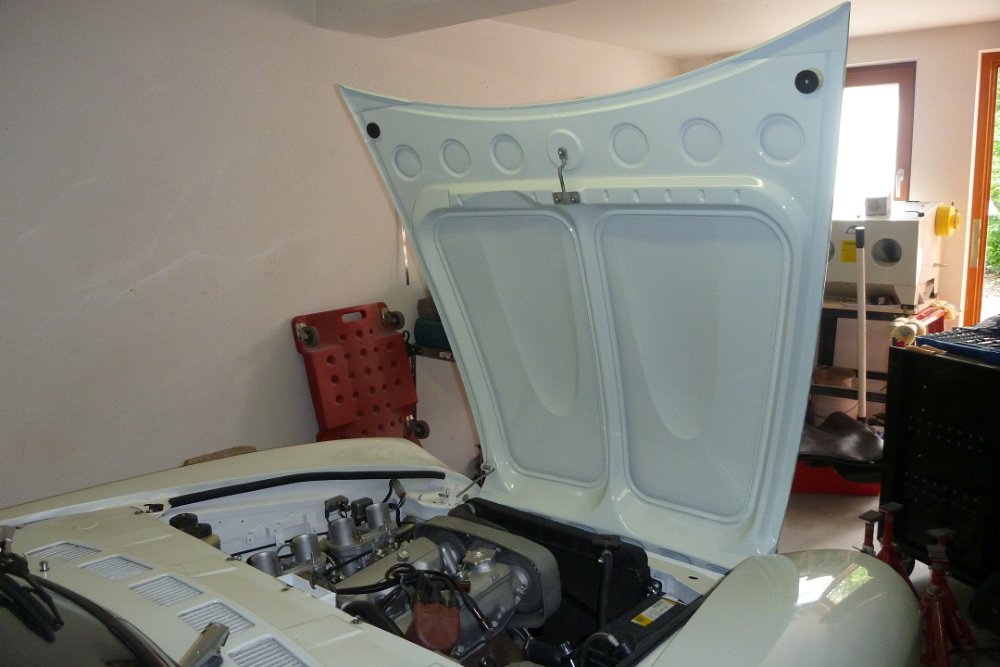 Die Motorhaube vom Lackierer zurück und eingebaut.